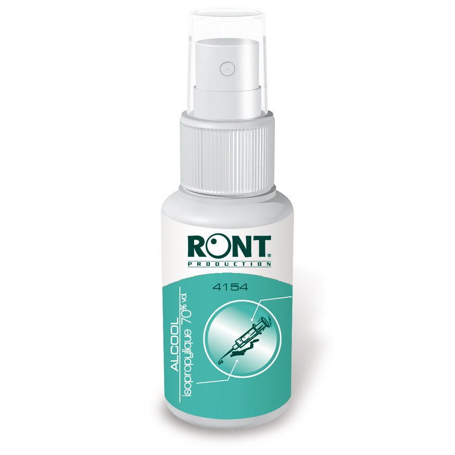 L'alcool isopropylique 70% s'applique normalement sur la zone à désinfecter.