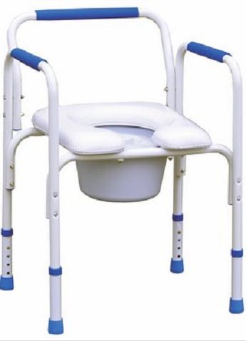 Garde robe, rehausse wc, cadre de maintien, chaise de douche, réglable en hauteur de 42 à 52 cm, seau avec système de guidage anti-reflux et assise confort.