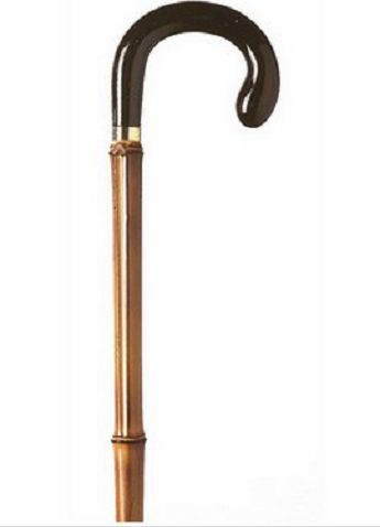 Canne de malade bambou véritable, poignée courbe.