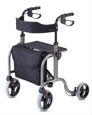 Ce rollator très léger en aluminium ne pèse que 6,7 kg. Son assise particulièrement large et souple permet de faire des pauses confortables. La large sangle de dossier de l’assise apporte sécurité et stabilité. Des dispositifs réfléchissants, situés sur le côté des roues avant, garantissent plus de sécurité de nuit ou au crépuscule. Grâce à ses poignées réglables en hauteur, ce rollator s’adapte aux utilisateurs, grands et petits. De plus, son équipement de série comprend un porte-canne ainsi qu’un grand sac en tissu amovible. Visuellement aussi, ce nouveau rollator léger vous séduira – disponible en platine ou en bleu métallisé – avec sa conception raffinée, souligné par les câbles de freins intégrés au châssis.