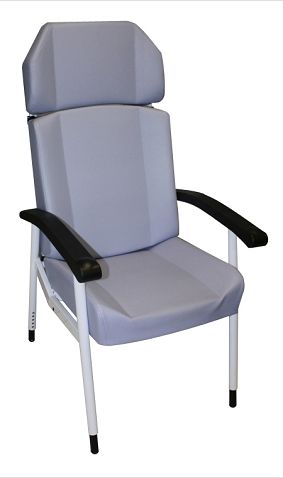 Fauteuil de repos réglable en hauteur à dossier fixe, et accoudoirs fixes.